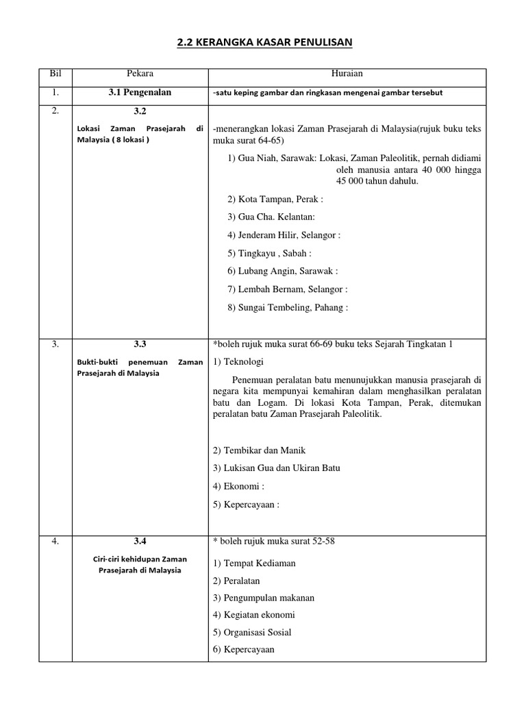 Contoh Kerangka Kasar Sejarah PT3 2022. Laporan Kajian Kes tingkatan 3 bagi tajuk Masyarakat Setempat di Tempat Tinggal. Lihat gambar di bawah ini dengan teliti.